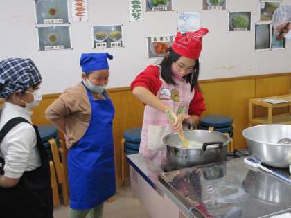 今日は、富山市学校給食豆腐納入組合の方々に豆腐の作り方を教えていただきました。いつも美味しく頂いている豆腐ですが自分たちでいざ作ってみると、大豆をミキサーにかけるときは少しずつ小分けに行ったりすることや、100度近くまで焦げないように温めたりするなど、手間がかかりとても大変だということを実際に体験することで学ぶことができました。また、みんなで作った豆腐だからこそ美味しく味わうことができ、料理を作る喜びもまた学んだことだと思います。