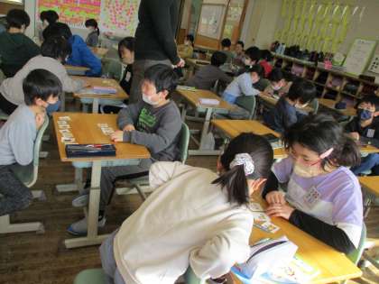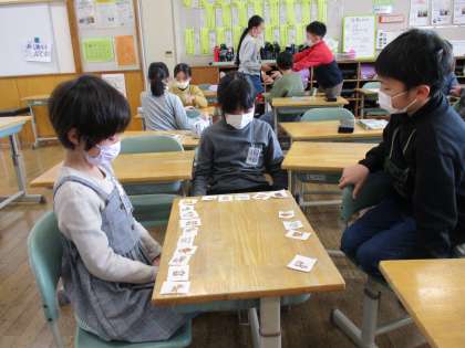 みんなの大好きな外国語活動の様子です。「Who are you?」の学習で、友達に3つのヒントを伝えて答えてもらうコミュニケーションの活動です。みんな、とってもすてきな笑顔で友達にヒントを言っていました。