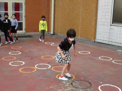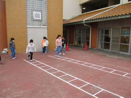 今日は、わくわく広場で竹馬やラダー等の4つのコースで体を動かしました。久しぶりに竹馬をしたようですが、体が覚えているようで高い竹馬に乗って歩いている子供や、友達と支え合いながら歩く練習をしている子供たちもいました。また、けんけんパーコースやラダーコースでは、足小刻みに動かしたり、ジャンプをしたりしながら楽しく運動をすることができました。