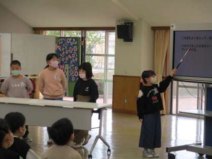 総合的な学習のまとめとして、今日はまとめたことを2年生に発表しました。この日のために、chromebookや新聞等にまとめ、繰り返し練習をしてきました。「この漢字は2年生で習ったかな?」「もっとみんなに聞こえるように大きな声を出そうよ」など、グループで話し合いながら取り組んできました。