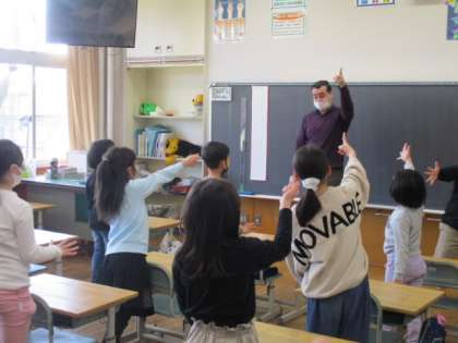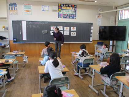 ALTのジェームズ先生に、外国語について学びました。英語でじゃんけんをしたり、動物の絵を見て英単語で話したりしました。その後、動物の絵を使ってビンゴを行いました。3年生から始まる外国語活動に向けて、意欲を高めることができました。