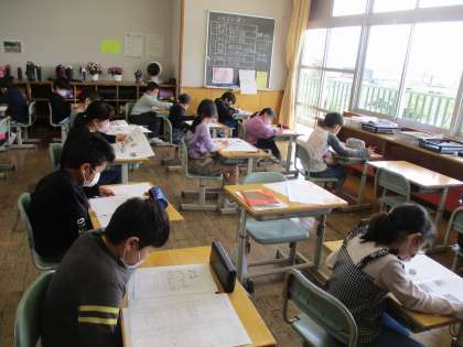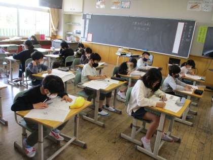 子供たちは、算数と社会の問題に取り組みました。検査中は、最後まであきらめず真剣に取り組む様子が見られました。