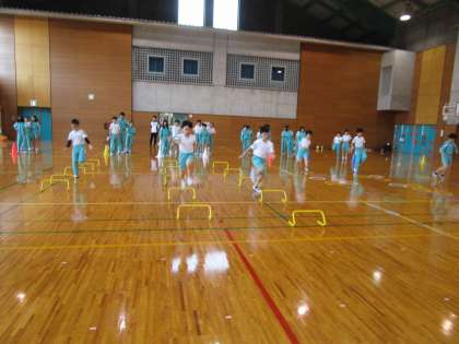 体育では、ミニハードルやミニコーンを使って瞬発力を高める運動をしています。何度も取り組むことで、身体をコントロールして動かせるようになってきました。