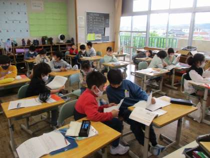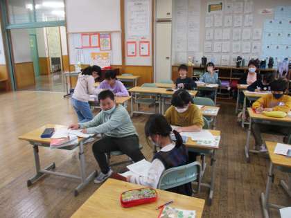 国語科「聞き取りメモのくふう」の学習を行いました。話を聞きながらメモしたことを、ペアになって、同じところや違うところを確認しながら、メモのくふうを見つけました。大事なことを箇条書きにしたり、記号を使ったりするなどのくふうを見つけました。