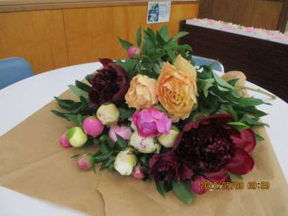 JAあおばから、色鮮やかできれいなシャクヤクの花をいただきました。そして、地域の方からもいただきました。