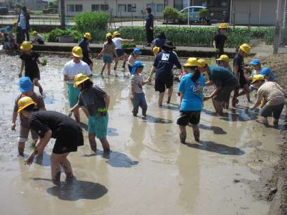 田植えを終えた後には、身体の泥を水でしっかりと落とし、終始楽しそうに活動に取り組んだ子供たちでした。ご家庭でも、どのような様子だったか是非お聞きください。
