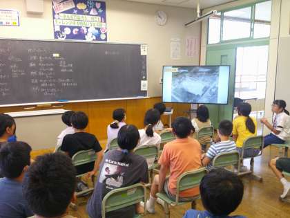 今日は総合的な学習の時間で、保内のよいところや困っているところを話し合いました。よいところとしては、豊かな自然に囲まれていること等の意見が出た一方、坂道が多い、用水路が多く危険であるなどといった困ったところの意見も出されました。その後、保内地区の人口の推移を表したグラフや、保内小学校の昔と今の航空地図を見て気付いたことを話し合い、保内にはどのような課題があるのかを考えました。