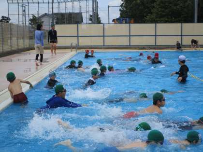 プール開きの後、5・6年生で初めての水泳学習を行いました。久しぶりのプールにわくわくしている様子の子供たちでしたが、泳力でコースに分かれ、一生懸命練習に取り組みました。