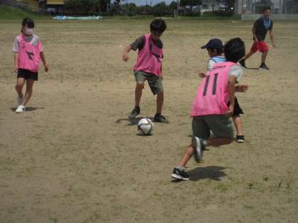かがやき教室では、サッカーをみんなで楽しみました。シュート・ドリブル練習後、ドリブルによるおにごっこや試合を楽しみました。夢中でサッカーボールを追いかける子供たちの姿が見られました。