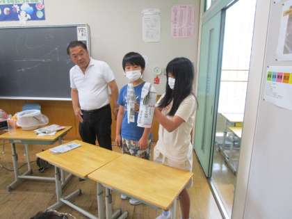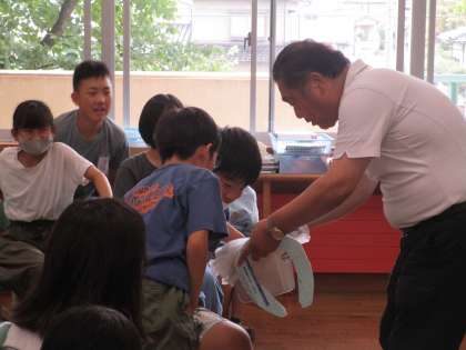 総合的な学習の時間に、保内防犯協会の会長さんを招いてお話をしていただきました。安心・安全だと思っていた自分たちの地域にも、災害や熱中症等によって、いつ身に危険が及ぶか分からないことや、災害への対策、災害時に役立つ生活方法等を教えていただきました。防災士である会長さんのお話を聞き、子供たちは、初めて学んだことの連続で驚いている様子でした。ご家庭でもぜひ話を聞いてみてください。