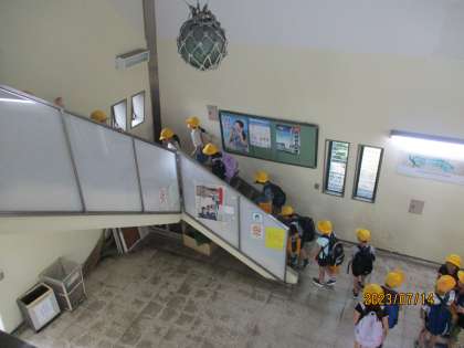 一休みしてから、長い階段を友達と声を掛け合いながら登っていきました。10メートル20メートルと登っていくと、出口の光が見えてきました。
