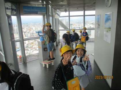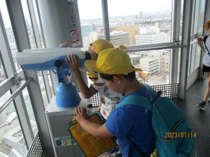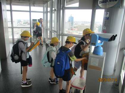 富山市役所の展望台では、市街地の様子を見渡すことができました。一日を通してたくさんの場所を巡り、たくさんの発見ができた子供たちでした。