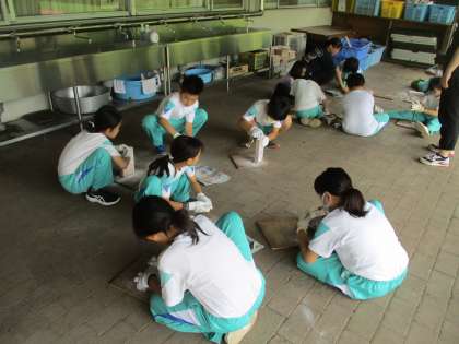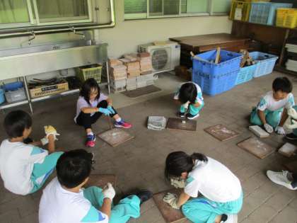 宿泊学習の2日目は、まが玉づくりをしました。一人一人が自分が気に入った形や色に仕上げていきました。集中して取り組む様子が見られました。できたまが玉は、ペンダントにして家にもって帰りました。