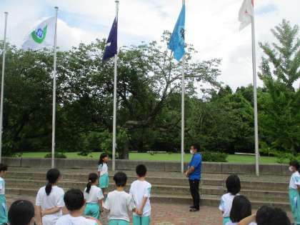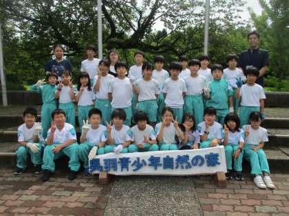 午後からは、ザリガニつりをしました。水がにごっていて、なかなかザリガニはつれませんでしたが、最後まであきらめずにつろうとしていました。退所式では、代表児童が「みんなで協力して楽しくできました。学校にもどってからも協力してがんばります」と話をし、他の児童も真剣な表情で聞いていました。