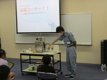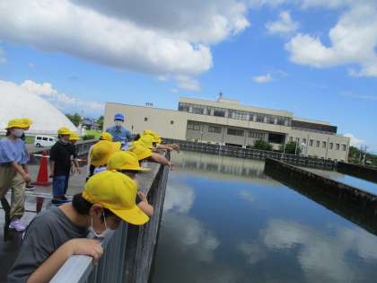 最初に富山市流杉浄水場へ行きました。くらしを支える水について、水がきれいになって家庭や学校に送られる工程を、実際の現場や水がきれいになる実験を見て学びました。子供たちのほとんどが、できた水を試飲して「おいしい」と感想を述べていました。