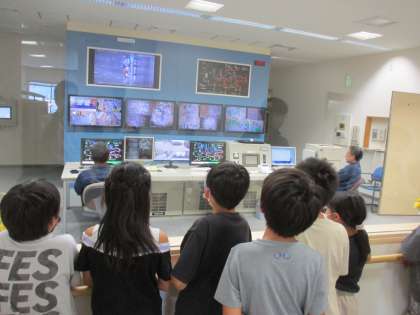 昼食を常願寺公園で食べてから、リサイクルセンターへ行きました。まず、ごみ処理についての話を聞き、その後、回収されて潰された空き缶や中央操作室でごみが処理される様子を監視しているところを見ることができました。ごみがどのように処理されているかについて知ることができ、ごみ学習への意欲をさらに高めることができました。