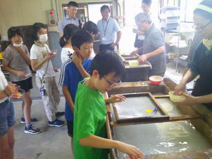 四季防災館で体験後、桂樹舎で紙すき体験を行い、自分だけのオリジナルの和紙を作りました。一日を通して、夏休みに貴重な体験をすることができた子供たちは、「行ってよかった!」と満足そうでした。
