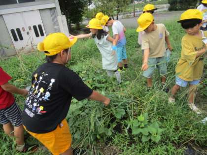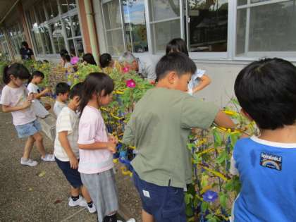 生活科の時間にあさがおの種取りとさつまいもの周りの草むしりを行いました。あさがおとさつまいもを見て、1学期よりもさらに大きくなっていることを実感している子供たちでした。
