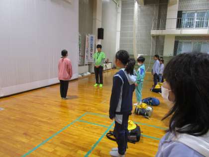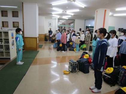 国立立山青少年自然の家での宿泊学習に向けて、出発式と入所式を行いました。代表児童がしっかりと代表の言葉を伝えました。