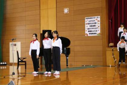 今日の学習発表会では、345年生が合唱を披露しました。練習の成果を生かして、仲間の歌声にも耳を傾け、声を合わせて美しいハーモニーを響かせました。