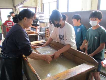 6年生は、桂樹舎で紙すき体験をし、自分の卒業証書を作りました。卒業まであと5か月。6年間の頑張りの証である卒業証書。子供たちは、真剣に丁寧に紙すきに取り組んでいました。5か月後、受け取る日を楽しみにしながら、どの活動にも一生懸命取り組んでいきましょう。
