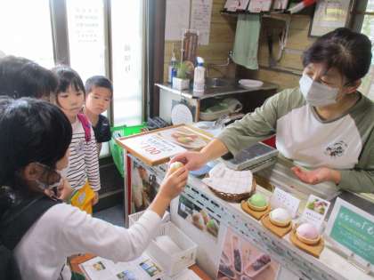 もなか屋さんでは、知りたいことをたくさん教えていただいた後に、一人一人もなかアイスを注文し、おいしくいただきました。