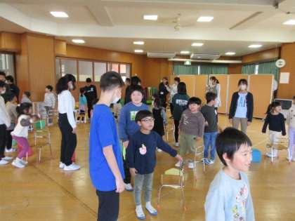 今回は、みんなで話し合い、集会形式でいす取りゲーム、おにごっこ、的当ての3つの活動をしました。いす取りゲームで座れなかった子供たちは折り紙をして待ってもらう、的当ての順番を待っている間はグループで遊ぶなど、できるだけ年長さんを退屈させず、また6年生とたくさん関わることができるようにしました。