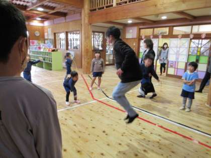 6年生はリンデ幼稚園を訪問し、年少さんから年長さんの園児さんと交流しました。子供たちが普段のように遊んでいるところに6年生も入り、なわとびやボール遊び、おりがみ等の活動を一緒にしました。とても小さな園児さんもいましたが、関わっているうちに少しずつ慣れ、楽しく活動していました。また、明日の生活発表会の歌を聞かせてもらいました。元気いっぱいの歌声がとても素敵でした。今日の交流を基に、次は6年生からも一緒にする遊びを考え、来週もう一度交流する予定です。