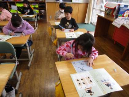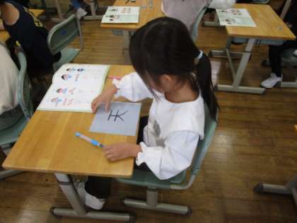 水筆を初めて使って字を書きました。いつも使っている鉛筆とは違う書き心地で、子供たちは「難しい」「楽しい」と言いながら書写の時間を楽しんでいました。