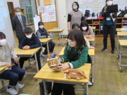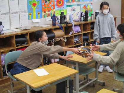 大谷選手のグローブお披露目会の後、グローブを各クラスに回し、一人一人が自分の手で持ってみました。