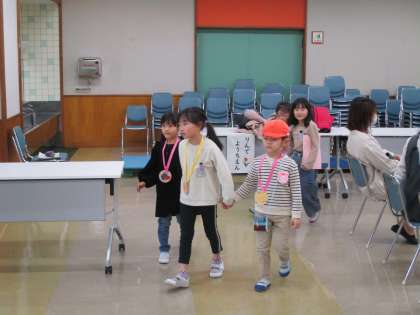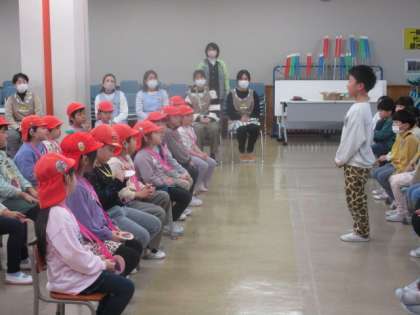 年長さんたちが学校へ来てくれました。1年生は「年長さんが小学校生活を楽しみにしてくれるように」と願いながら、今日の準備を進めてきました。年長さんたちと学校案内や一緒に遊ぶことを通して、4月から2年生として頑張ろうという気持ちを高めた子供たちでした。