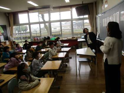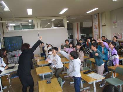 今年度初めての外国語の授業がありました。英語でのじゃんけんや動物のジェスチャーゲームなどをしました。じゃんけんのかけ声や動物の鳴き声を知り、日本語との違いを知り、おもしろさや楽しさを感じていた子供たちでした。
