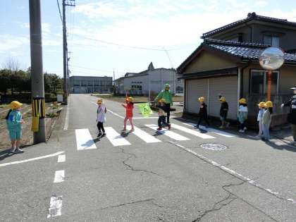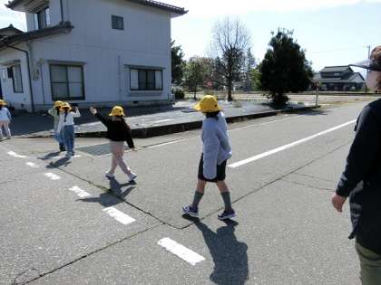 1・2年生は交通安全教室で道を安全に歩く学習をしました。一列になって歩くこと、踏切や横断歩道を安全に渡ることに特に気を付けて学習しました。一人一人がしっかりと安全確認をすることができました。今日学習したことや気を付けたことをこれからも続けていってほしいと思います。