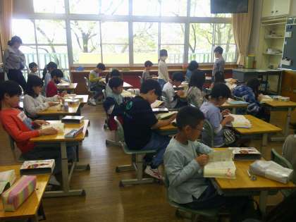 学習参観では、国語科「漢字辞典を使おう」の学習をしました。いろいろな調べ方でお題となる漢字を探していました。はじめは難しく感じる子供もいたようですが、繰り返すうちに調べ方にも慣れてきたようです。班の中で問題を出し合っているときは、友達とも協力的に活動していました。