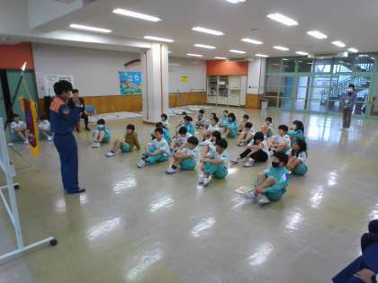 消防に関する話をしっかりと聞いて、BFCバッジを受け取りました。
