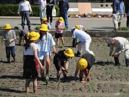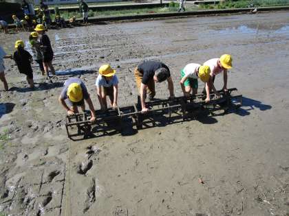 たくさんの人たちの協力のおかげで、最後まで楽しんで田植え体験ができました。