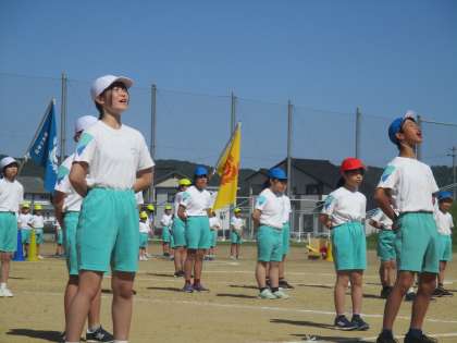 開会式では、真剣な態度で臨み、競技への志気を高めていました。