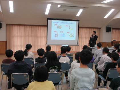 富山法人会の方が来校し、税金の種類や大切さについてクイズや動画を通して学びました。実際の1億円と同じ重さの物を持つことで、自分たちの身の周りで使われている金額の大きさに驚く子供たちでした。
