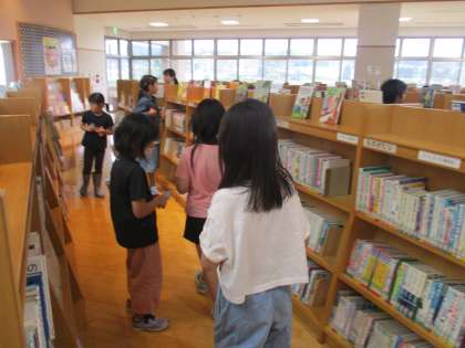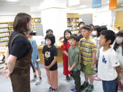 水泳学習の後には八尾図書館ほんの森へ行きました。図書館にある本のことや図書館の利用の仕方を教わりました。