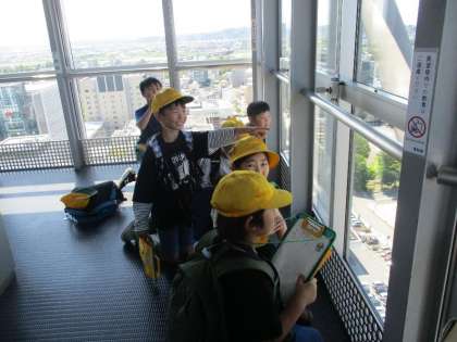 郷土博物館の後は富山市役所展望塔へ行きました。高い所から富山市の様子を眺めました。