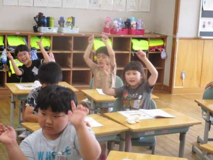 今日から4年生が宿泊学習に出かけるので、玄関でお見送りしました。「ぼくたちはいつ行けるかな」とつぶやきながら、うらやましい気持ちとさみしい気持ちで手を振って見送りました。