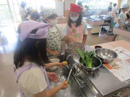 じゃがいもとほうれん草を茹でました。仲間と声を掛け合い、協力することができました。