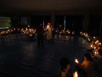 みんなでろうそくの火を囲むキャンドルサービスを行いました。美しい火を囲みながらゲームを楽しみました。
