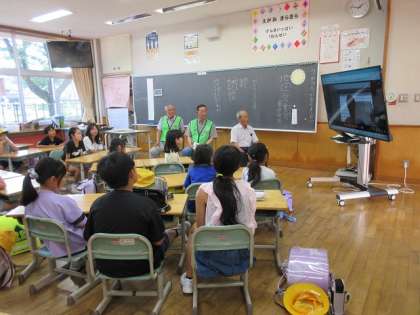 日頃、お世話になっている見守り隊の代表の方々を招いて、懇談会と顔合わせ会を行いました。顔合わせ会では、地区毎に分かれて、自己紹介をしました。見守り隊の方の名前を覚えて、登下校の際には元気に挨拶のできる保内っ子になってほしいと願っています。