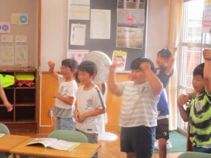 新しい週が始まりました。1年生は、暑い中でも元気よく生活しています。