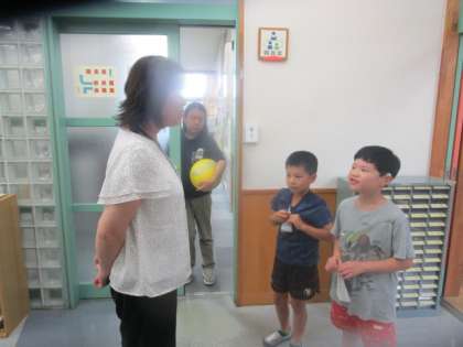 また、休憩の時間には、生活科の学習でもっと仲良くなりたい教職員の方のところへ行き、自己紹介やインタビューをすることができました。