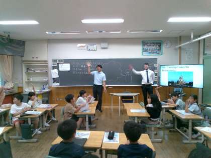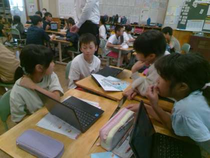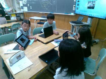 外国語専科の先生やALTの先生の話をよく聞いて学習をしています。班の中で質問もどんどんしていました。