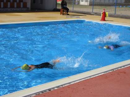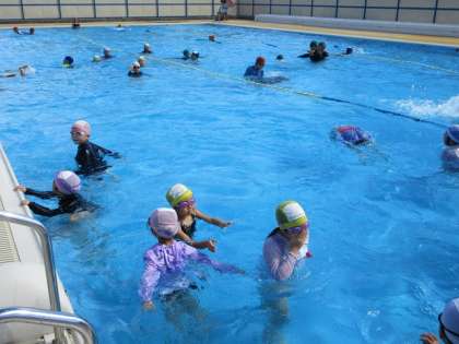 今日は、プール開放を行いましたが、プールサイドで測定しているWBGT(暑さ指数)が、8時すぎには31度を超えていたため、9時までの30分間の入水としました。短い時間でしたが、63名の子供たちが元気にプールを楽しんでいました。