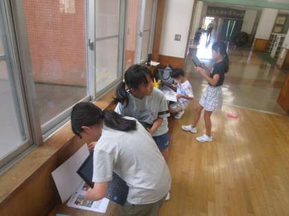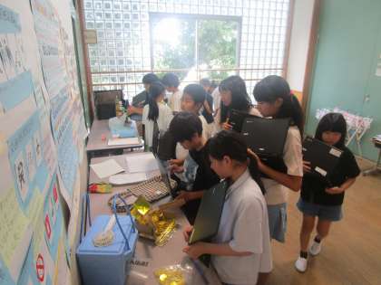 夏休みに頑張ってきた自由研究を鑑賞しました。仲間の努力を見て、向上心を高めていました。