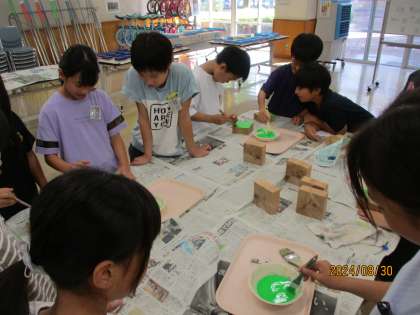 150周年記念制作の色塗りをしました。次は乾いてから文字を書きます。
